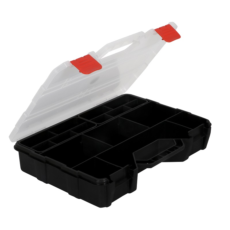 استفاده از مواد pp درجه یک قابلیت نگهداری انواع پیچ و مهره و اکسسوری و قطعات الکتریکی، جعبه کمک های اولیه و… درب شفاف جهت مشاهده اجناس داخل جعبه |